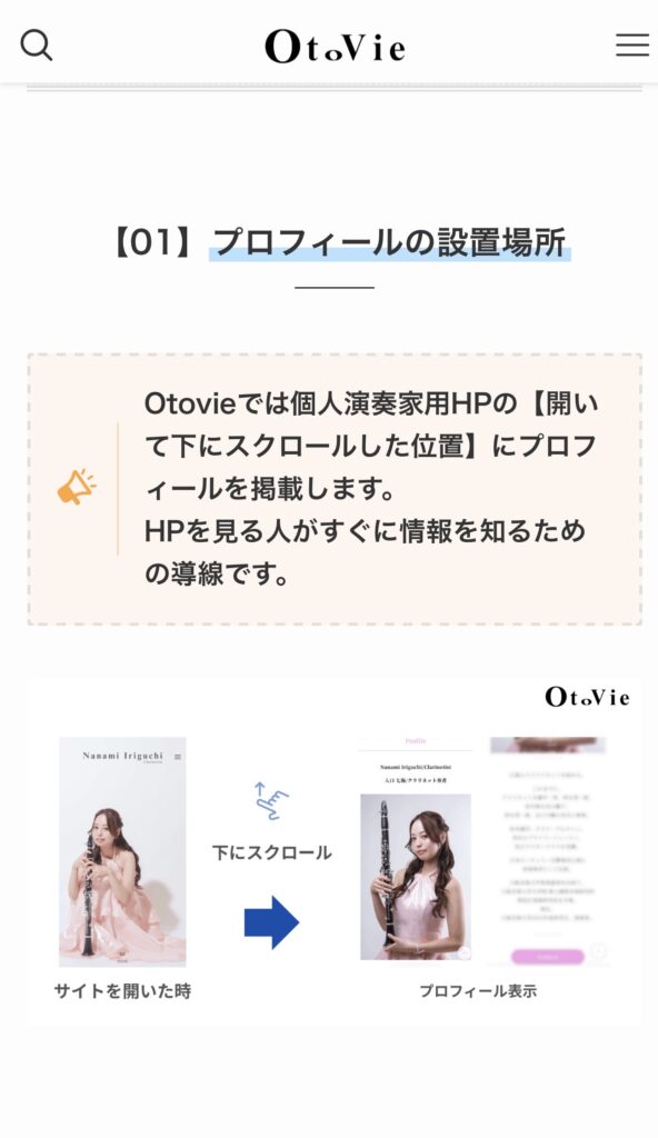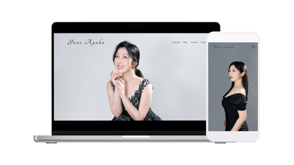 お客様から宣材写真やプロフィール文章を提出をいただき、Otovieが最適な画像の組み合わせやロゴ、色合いを提示することによって、シンプルで機能的かつ、更新し続けることのできる個人演奏家HPの完成制作が実現します。