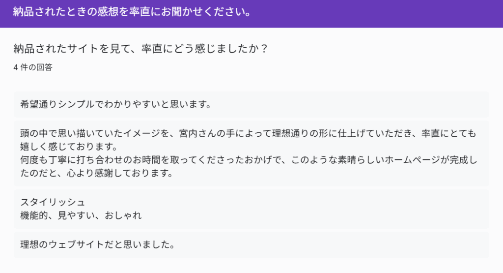 ロゴのデザインの提案をして頂いたり、プロの目線からご提案いただけて良かったです。
