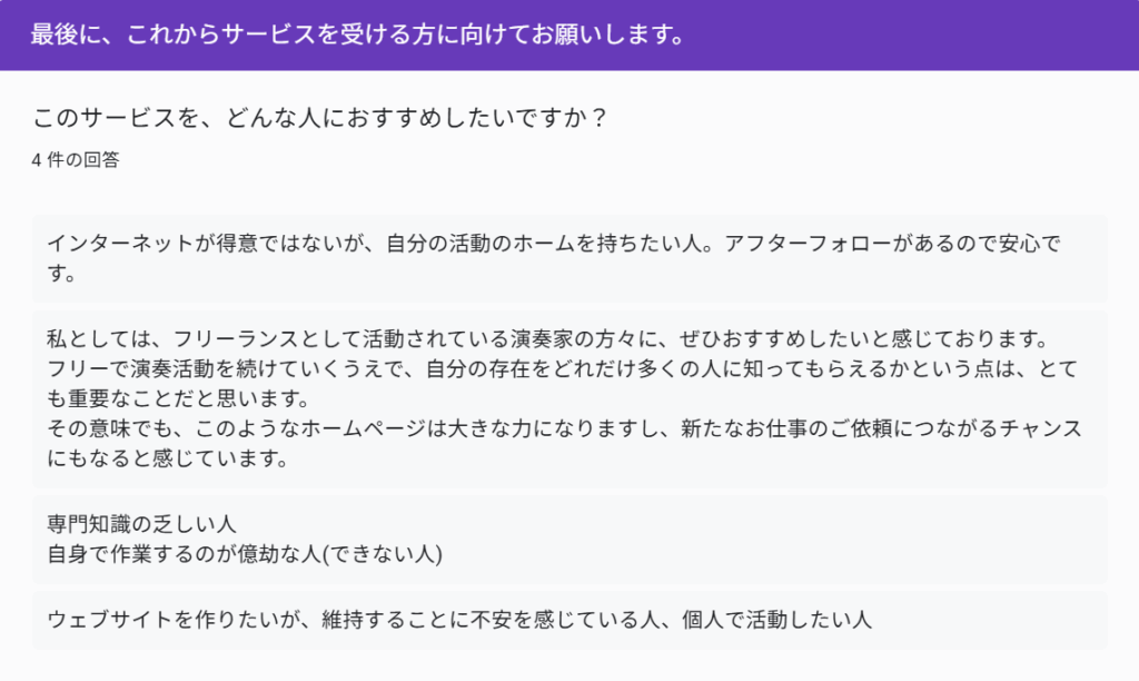 2025年8月よりHP制作の第一期モニターを募集開始し、演奏家、音楽教室の皆さまから計10件のご依頼をいただきました。
